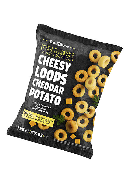Significantly smaller than standard frozen snacks (just 12 g per piece), Cheesy Loops are ready to serve in around two minutes. What’s more, they retain their signature crispy texture for an extended period – a real advantage during peak service times and holding phases. Compact in size, big on impact.