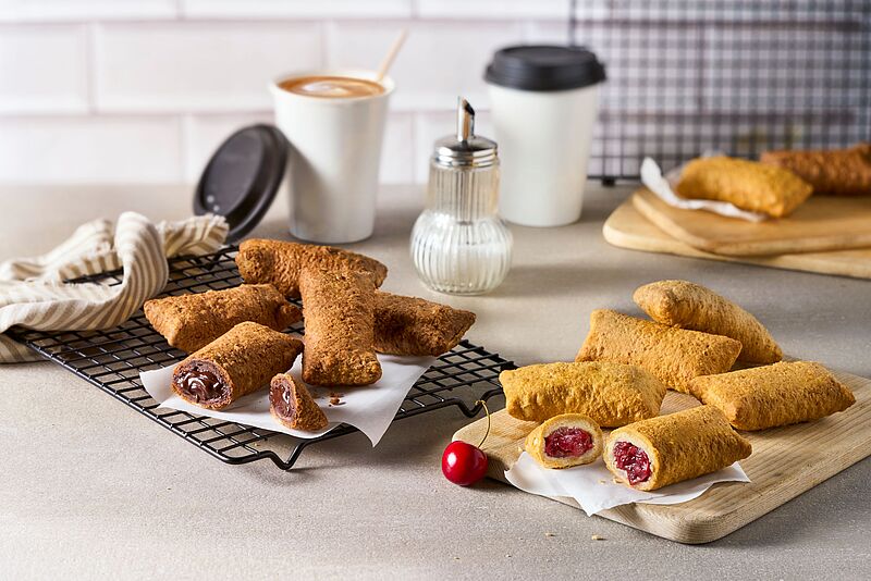 Crisp, light pastry filled with hot cherries, juicy apple, smooth vanilla cream or melting chocolate – Sweet Pies add an uncomplicated yet indulgent sweet treat to any foodservice offering. They can be prepared to perfection in just a few minutes using all standard kitchen equipment, making them as convenient as they are delicious. At 50 grams per piece, these refined pastry pockets are ideal as a dessert, a tempting accompaniment to hot drinks, or a sweet impulse purchase in cafés and grab-and-go settings. Four delicious varieties provide plenty of choice and open up attractive seasonal marketing opportunities.