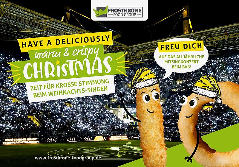 Selbstverständlich lässt es sich die Unternehmensgruppe mit Hauptsitz im nordrhein-westfälischen Rietberg nicht nehmen und wünscht allen Besuchern per Bannerwerbung, im Stadion-TV und im Magazin „a deliciously, warm and crispy Christmas".